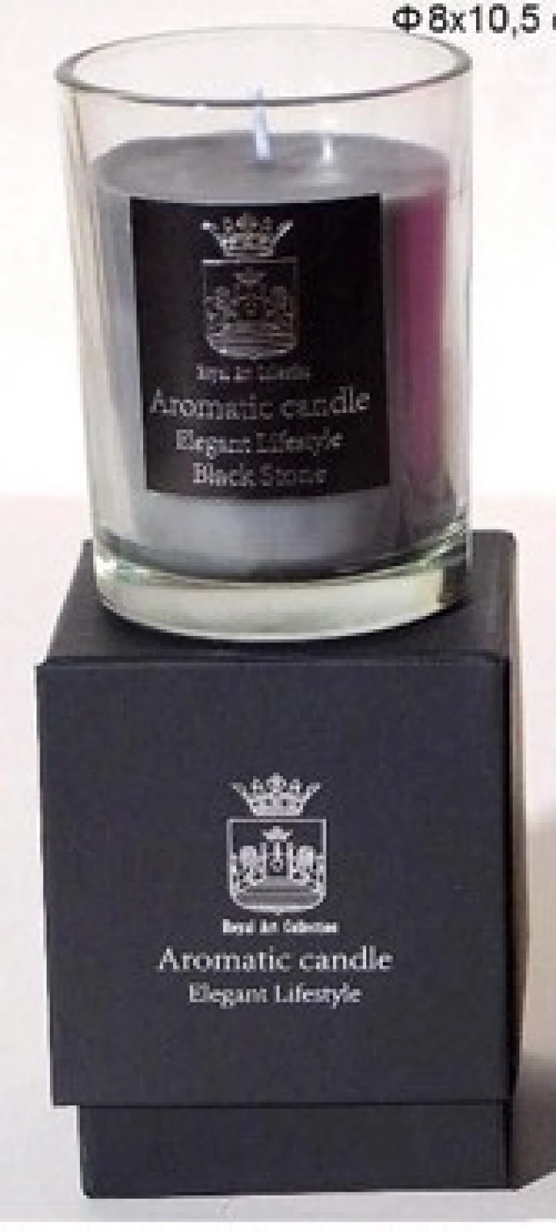 Αρωματικό κερί σε γυάλινο ποτηράκι με άρωμα black stone συσκευασμένο σε μαύρο κουτί από την Royal Art - Διαστάσεις: 8x10,5εκ.