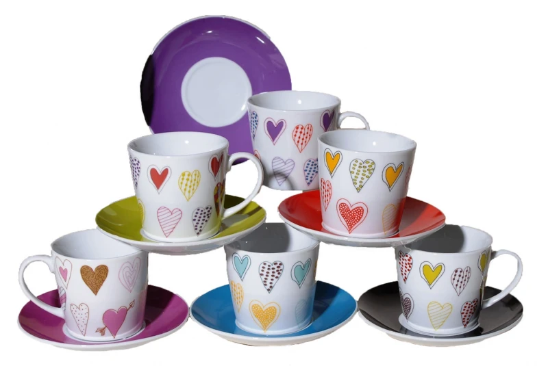 Σετ 6 τμχ φλυτζάνια τσαγιού πορσελάνης με διακόσμηση πολύχρωμες καρδιές από την Royal Art - Χωρητικότητα: 180ml