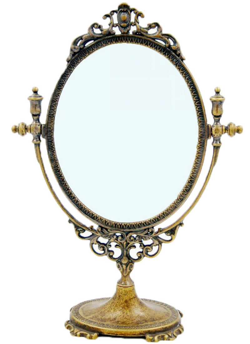 Επιτραπέζιος καθρέπτης μπρούτζινος με σκαλιστές λεπτομέρειες στη βάση από την Royal Art - Διάσταση: 38εκ.