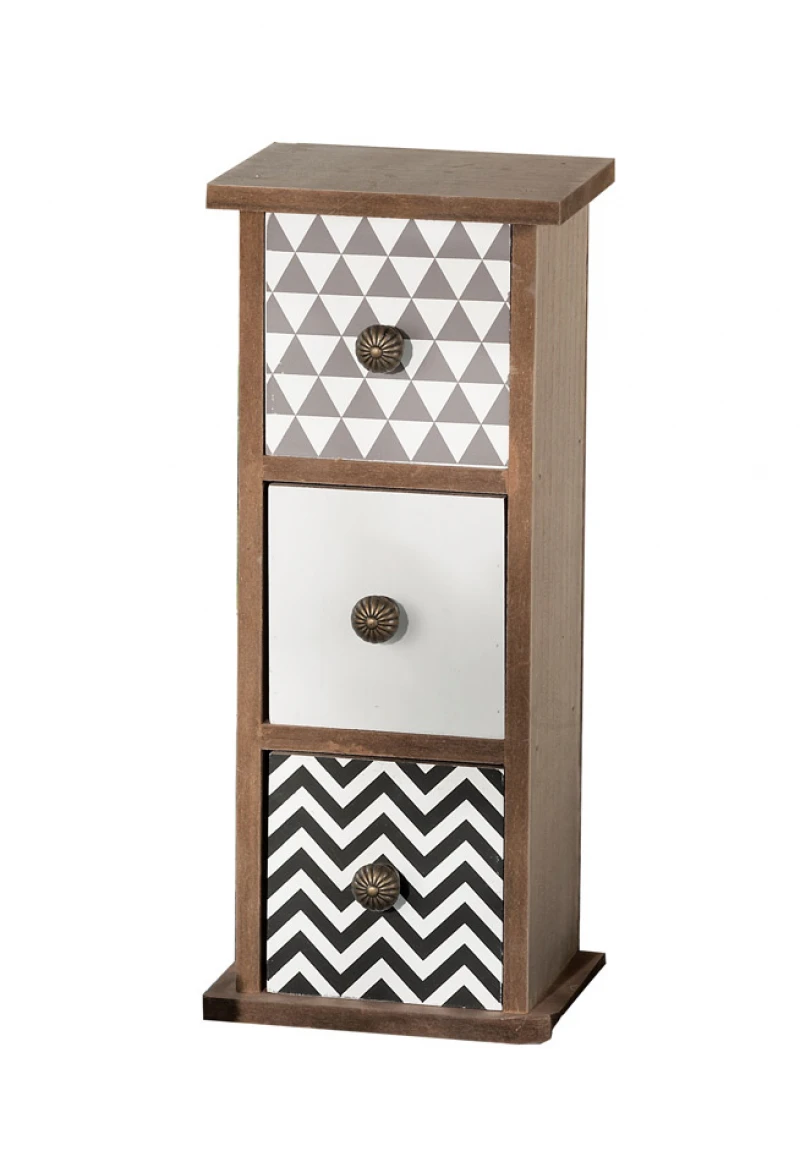 Αποθηκευτικό ξύλινο κουτί με τρία συρτάρια διακοσμημένα με διάφορα γεωμετρικά σχήματα από την Royal Art - Διαστάσεις: 13x10x30εκ.