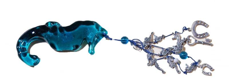 Διακοσμητικό αλογάκι της θάλασσας γυάλινο σε γαλάζιο χρώμα με κρεμαστά μεταλλικά γούρια από την Royal Art Collection - Διαστάσεις: 35εκ.