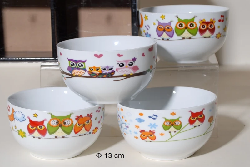 Μπωλ σερβιρίσματος σετ 4τμχ, πορσελάνης σε λευκό χρώμα με σχέδιο κουκουβάγιες από την Royal Art Collection - Διαστάσεις: 13εκ.