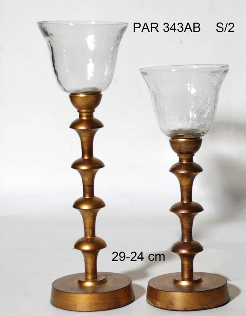 Σετ 2τμχ Κηροπήγια Μπρούτζινα-Γυάλινα Royal Art 29εκ. PAR343AB