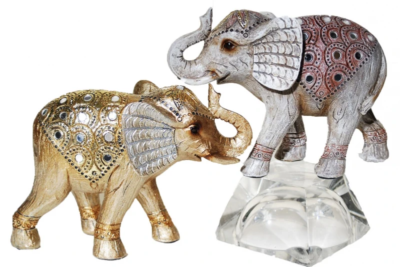 Σετ 2τμχ διακοσμητικοί ελέφαντες πολυεστερικοί σε μπεζ - χρυσό χρώμα με ανάγλυφα σχέδια από την Royal Art Collection - Διαστάσεις: 19,5x13,5εκ.