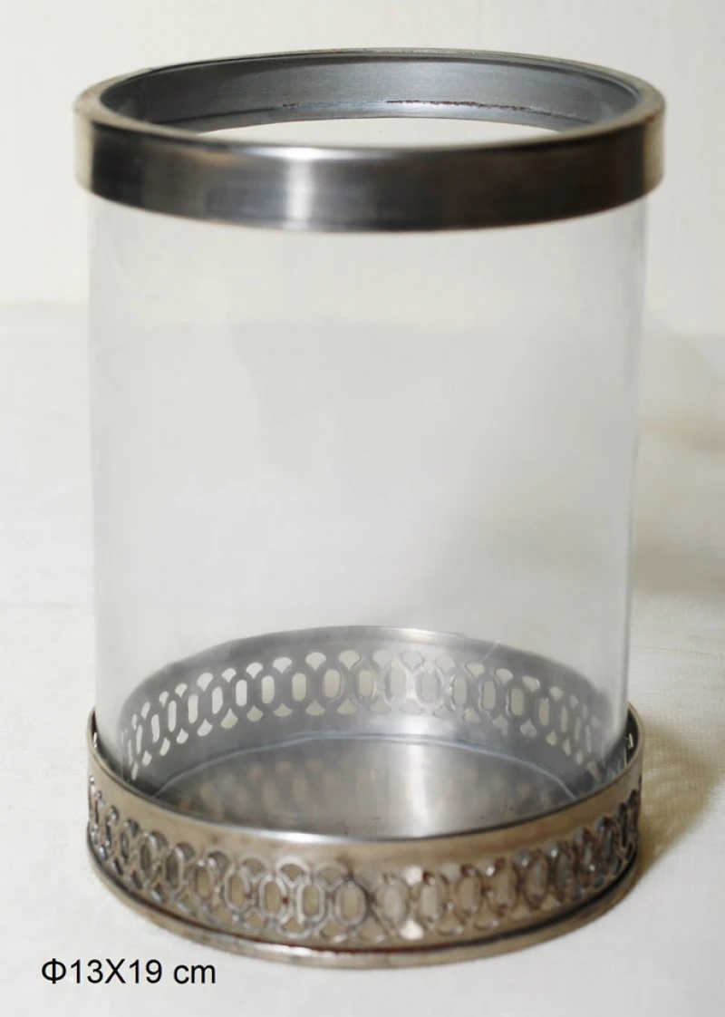 Κηροπήγιο γυάλινο με μεταλλική βάση σε ασημί χρώμα από την Royal Art Collection - Διαστάσεις: 13x19εκ.