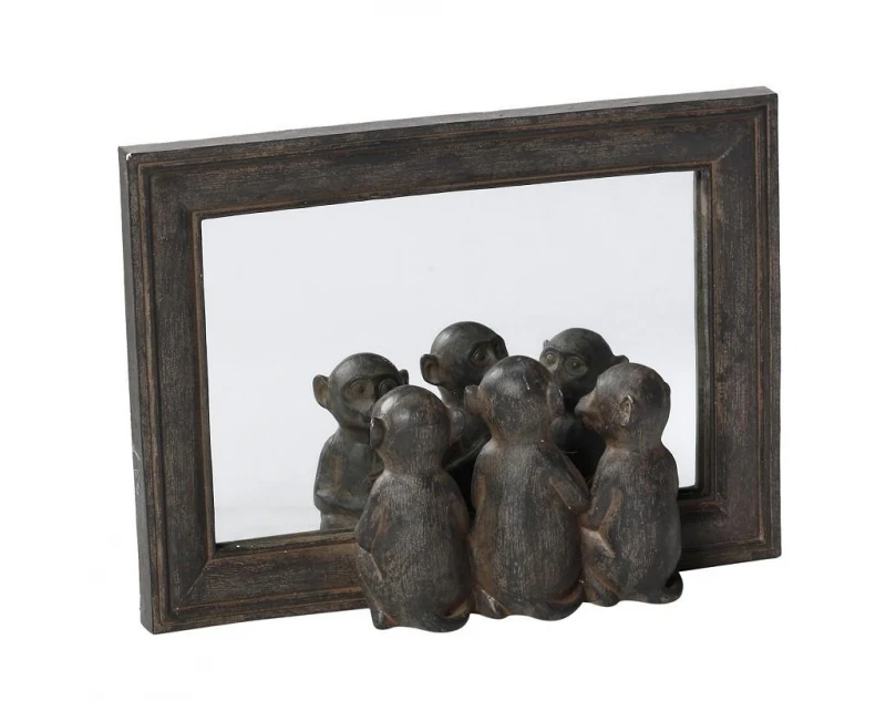 Καθρέπτης "πίθηκος" polyresin σε γκρι χρώμα από την ESPIEL - Διαστάσεις: 21,5x15,5εκ.