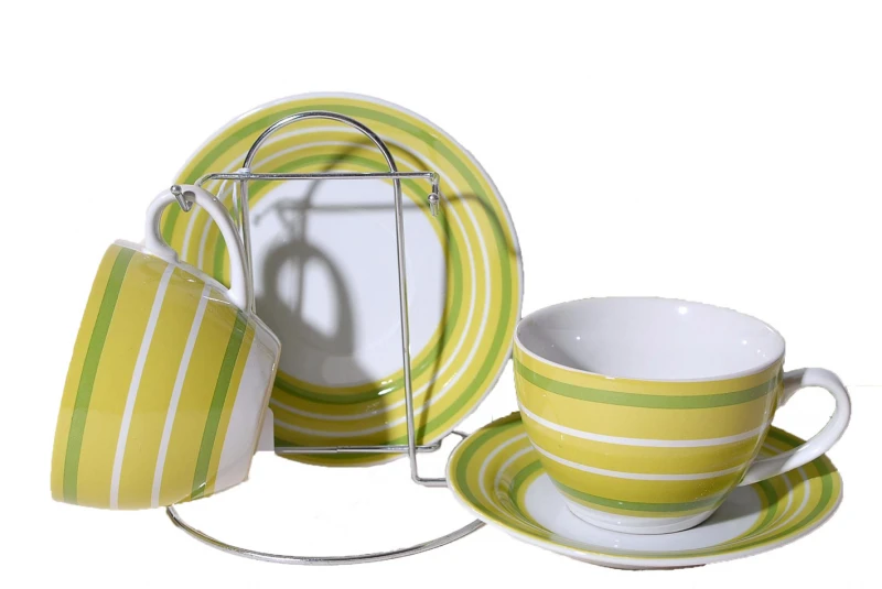 Σετ 2τμχ φλυτζάνια τσαγιού πορσελάνης με βάση σε κίτρινο - πράσινο χρώμα με ρίγες από την Royal Art Collection- Χωρητικότητα: 200ml