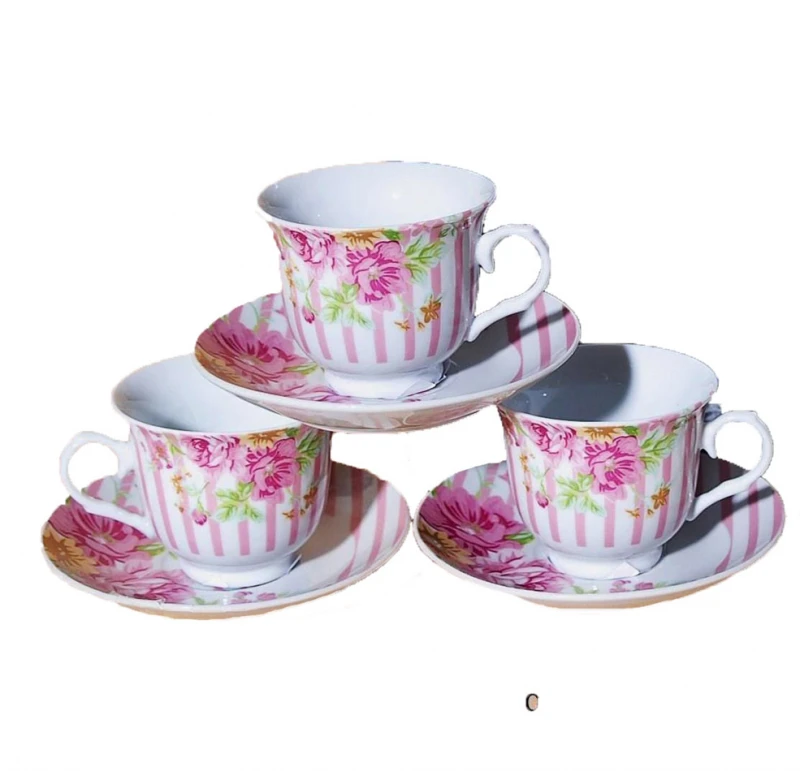 Σετ 6τμχ φλυτζάνια τσαγιού πορσελάνης σε λευκό - ροζ χρώμα με λουλουδάκια από την Royal Art Collection- Χωρητικότητα: 200ml