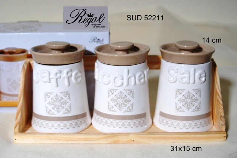 Δοχείο Σετ 3τμχ Καφέ-Ζάχαρη-Αλάτι Φαγιάνς Royal Art 31x15εκ. SUD52211