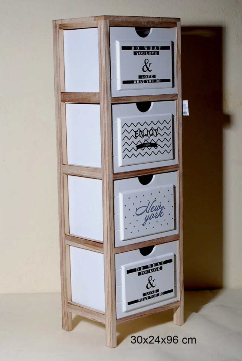 Συρταριέρα ξύλινη με 4 συρτάρια σε φυσικό - λευκό χρώμα από την Royal Art Collection - Διαστάσεις: 30x24x96εκ.