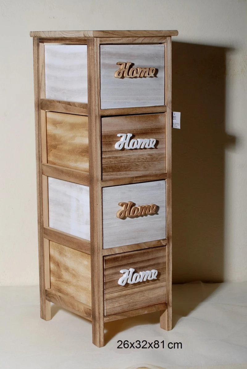 Συρταριέρα ξύλινη με 4 συρτάρια σε φυσικό - λευκό χρώμα από την Royal Art Collection - Διαστάσεις: 26x32x81εκ.