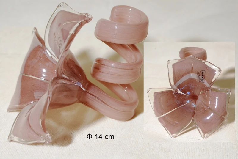 Κηροπήγιο γυάλινο σε σχήμα λουλουδιού σε αποχρώσεις του καφέ - ροζ από την Royal Art Collection - Διαστάσεις: διάμετρος 14εκ.