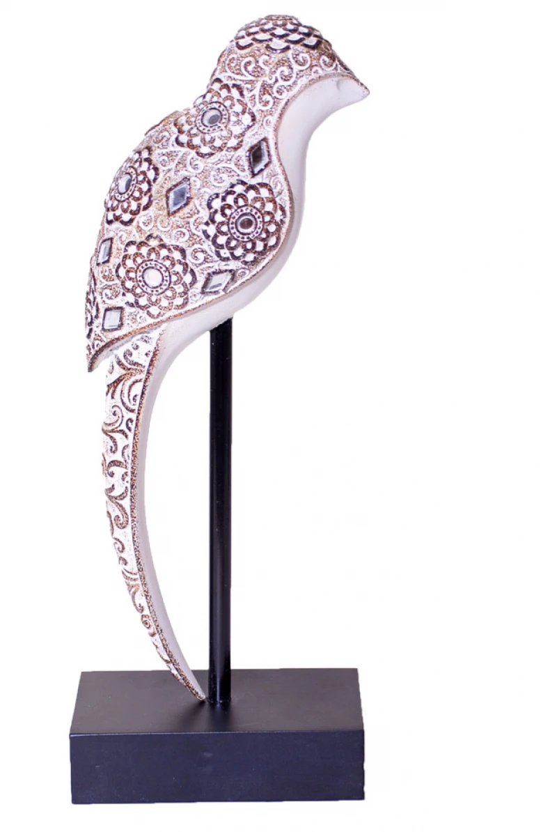Διακοσμητικό πουλί πολυεστερικό σε γήινες αποχρώσεις με διάφορα σχέδια και χρυσές λεπτομέρειες σε μαύρη βάση από την Royal Art Collection - Διαστάσεις: 10x28εκ.