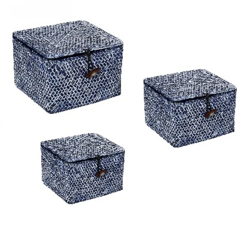 Κουτί τετράγωνο σετ 3τμχ σε μπλε χρώμα από την ESPIEL - Διαστάσεις: 16-13-10εκ.