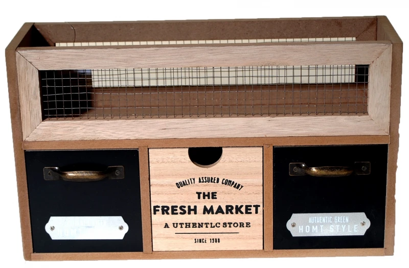 Ραφιέρα επιτοίχια ξύλινη με τρία συρτάρια για αποθηκευτικό χώρο σε καφέ - μαύρο χρώμα με πλέγμα από την Royal Art Collection - Διαστάσεις: 34x10x20εκ.