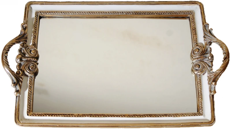Δίσκος σερβιρίσματος με καθρέπτη πολυεστερικός σε αντικέ χρυσό - λευκό χρώμα από την Royal Art Collection - Διαστάσεις: 39x35εκ.