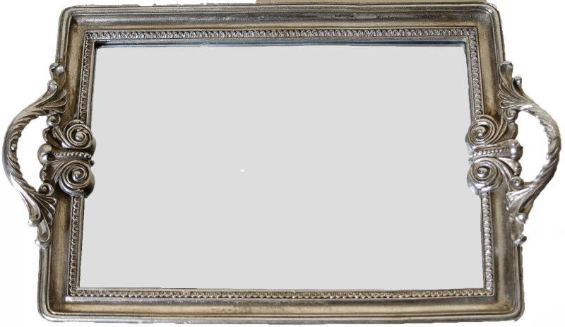 Δίσκος σερβιρίσματος με καθρέπτη πολυεστερικός σε αντικέ ασημί χρώμα από την Royal Art Collection - Διαστάσεις: 40x35εκ.