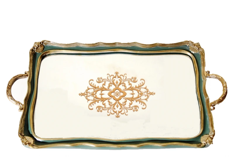 Δίσκος σερβιρίσματος με καθρέπτη πολυεστερικός σε αντικέ χρυσό - πράσινο χρώμα από την Royal Art Collection - Διαστάσεις: 50x30εκ.