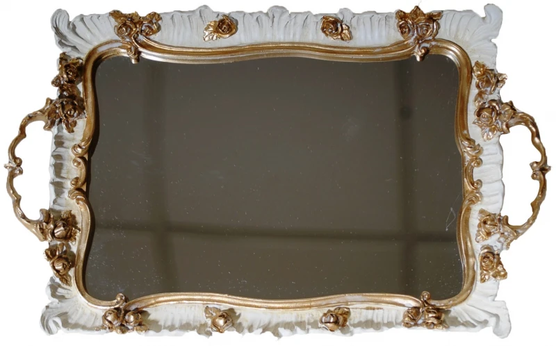 Δίσκος σερβιρίσματος με καθρέπτη πολυεστερικός με χρυσή - μπεζ χειροποίητη σκαλιστή διακόσμηση από την Royal Art Collection - Διαστάσεις: 34x22εκ.