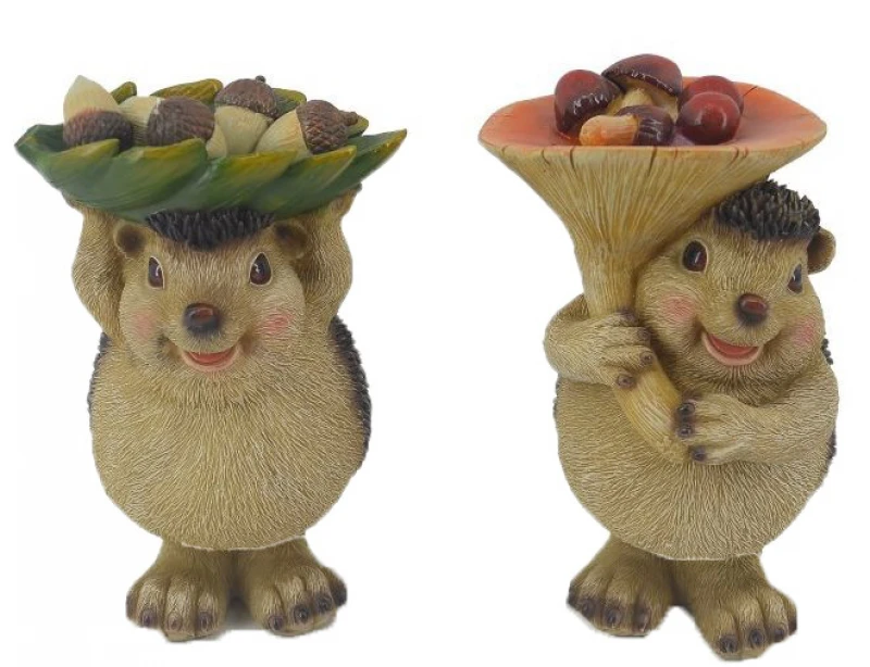 Σετ 2τμχ σκαντζόχοιροι πολυεστερικοί οι οποίοι κρατάνε ψηλά μανιτάρια και καρύδια από την Royal Art Collection, Διαστάσεις: 11x16εκ.