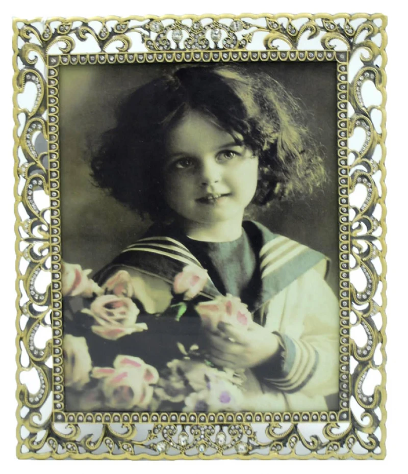 Κορνίζα μεταλλική με περίτεχνο κλασικό πλέξιμο στο μέταλλο της και λευκά στρας τύπου swarovski - Διαστάσεις: 20x25εκ.