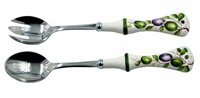 Σετ σερβιρίσματος σαλάτας 2τμχ φαγιάνς διακοσμημένα με κλαδί ελιάς στην λαβή από την Royal Art Collection - Διαστάσεις: 28εκ.