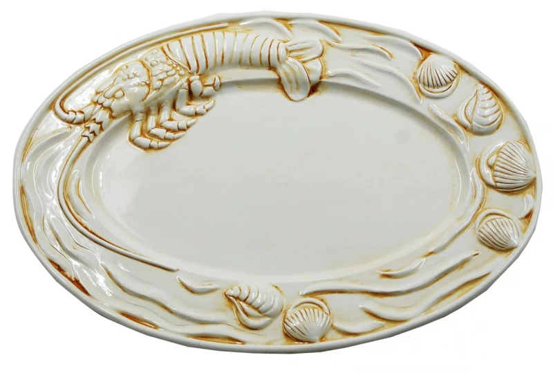 Πιατέλα σερβιρίσματος φαγιάνς σε λευκό - μπεζ χρώμα διακοσμημένο με αστακό και κοχύλια από την Royal Art Collection - Διαστάσεις: 46x32εκ.