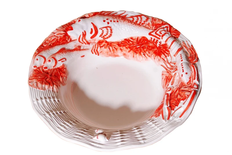 Μπωλ σερβιρίσματος φαγιάνς σε λευκό - κόκκινο χρώμα διακοσμημένο με ψάρια από την Royal Art Collection - Διαστάσεις: 30εκ.