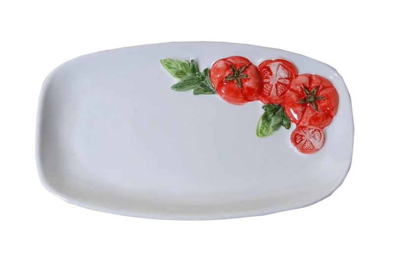 Πιατέλα σερβιρίσματος φαγιάνς σε λευκό χρώμα διακοσμημένη με ντομάτες από την Royal Art Collection - Διαστάσεις: 27x15,5εκ.