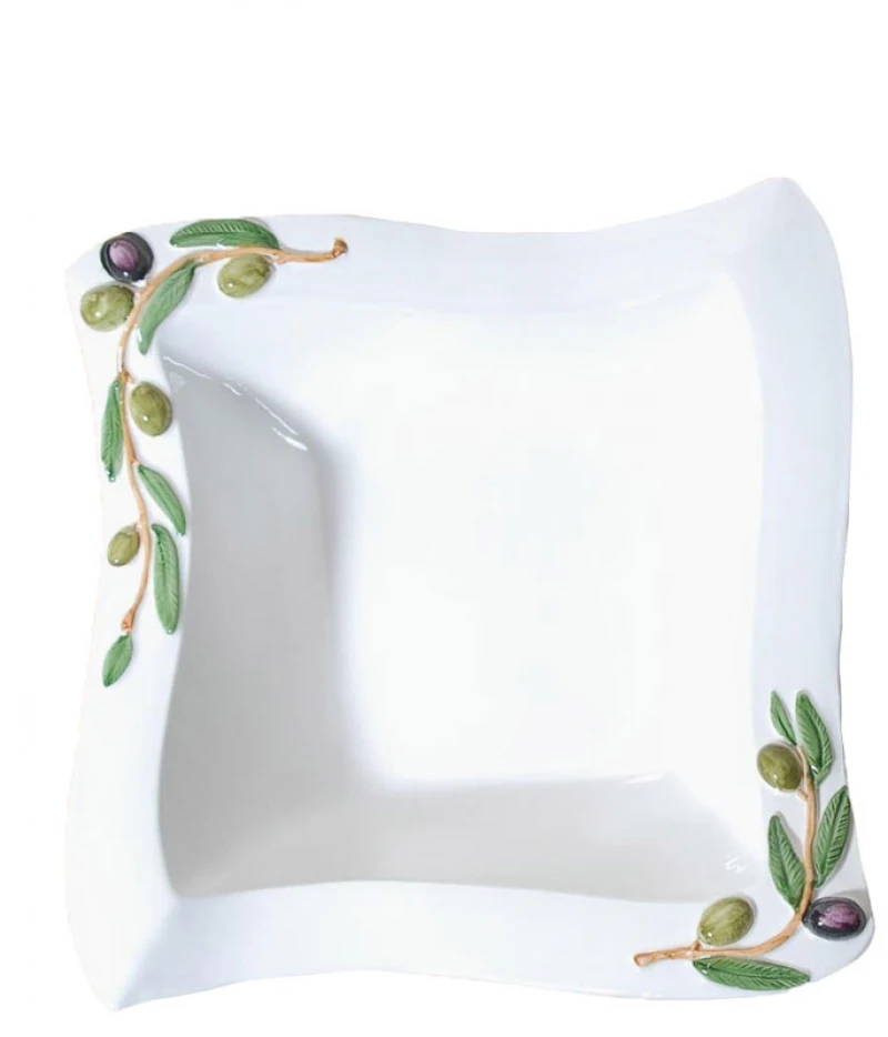 Μπωλ σερβιρίσματος φαγιάνς σε λευκό χρώμα διακοσμημένο με ελιές από την Royal Art Collection - Διαστάσεις: 31x31εκ.