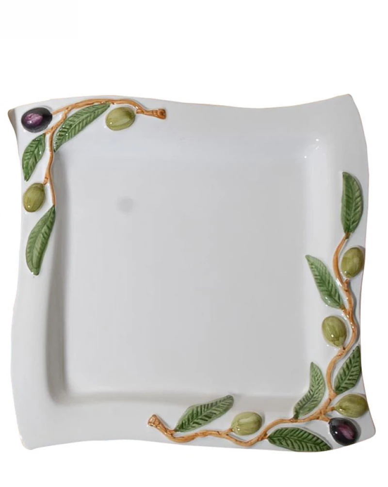 Πιατέλα σερβιρίσματος φαγιάνς σε λευκό χρώμα διακοσμημένο με ελιές από την Royal Art Collection - Διαστάσεις: 26x26εκ.