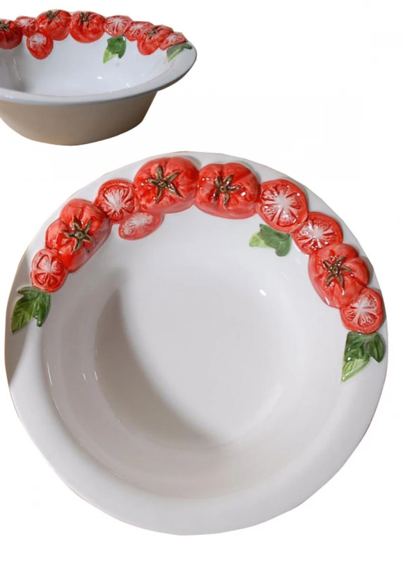 Μπωλ σερβιρίσματος φαγιάνς σε λευκό χρώμα διακοσμημένο με ντομάτες από την Royal Art Collection - Διαστάσεις: 28εκ.