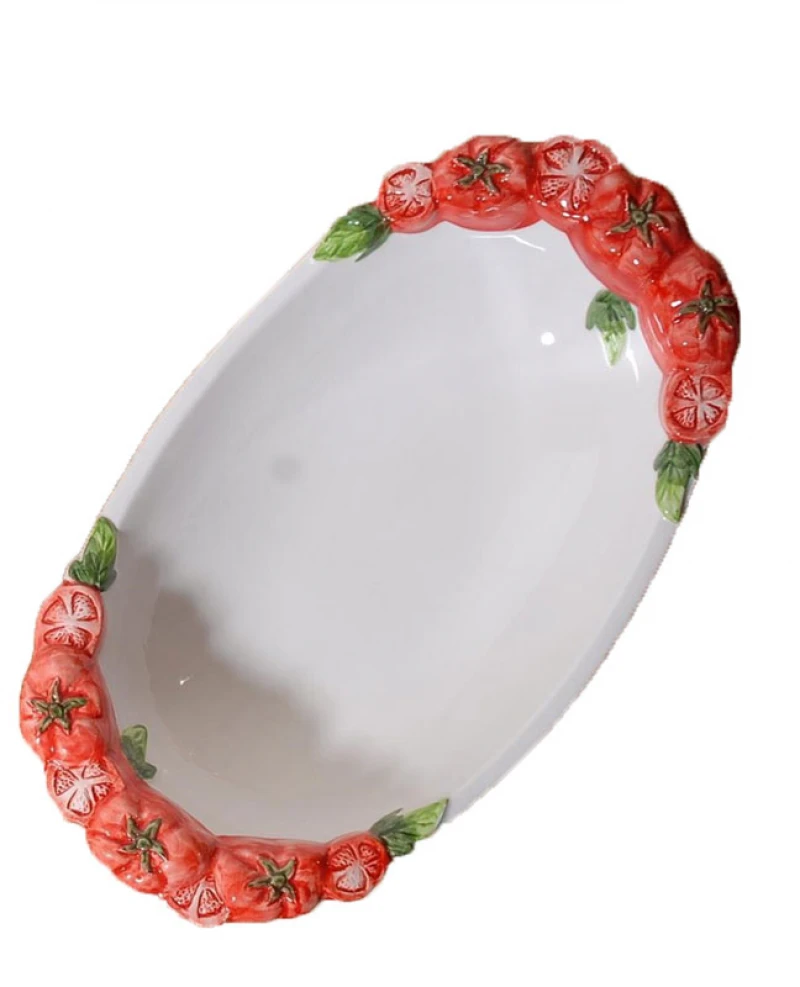 Μπωλ σερβιρίσματος φαγιάνς σε λευκό χρώμα διακοσμημένο με ντομάτες από την Royal Art Collection - Διαστάσεις: 40x23εκ.
