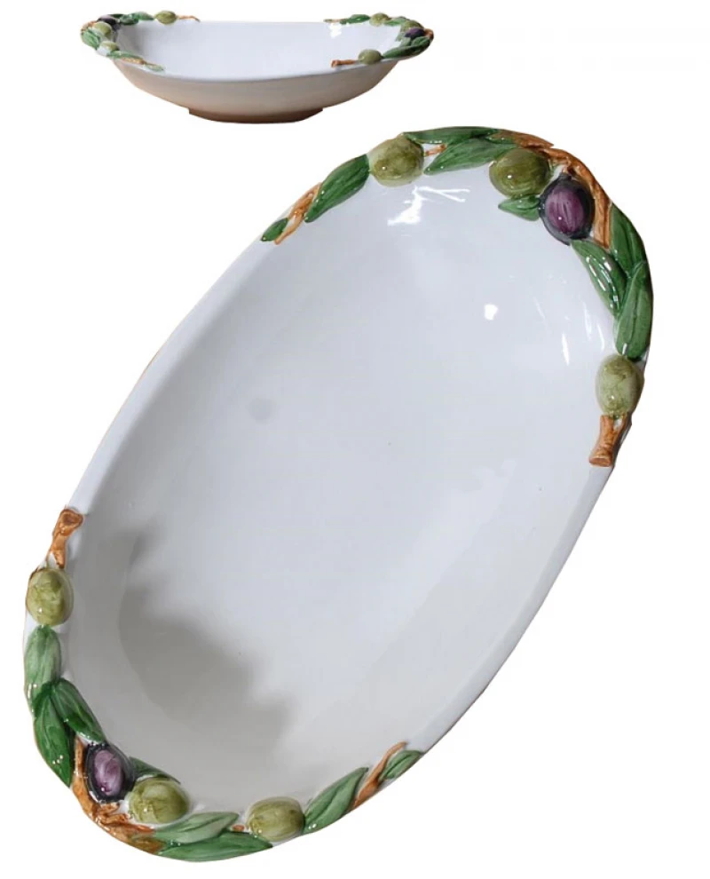 Μπωλ σερβιρίσματος φαγιάνς, οβάλ σε λευκό χρώμα διακοσμημένο με ελιές από την Royal Art Collection - Διαστάσεις: 40x23εκ.