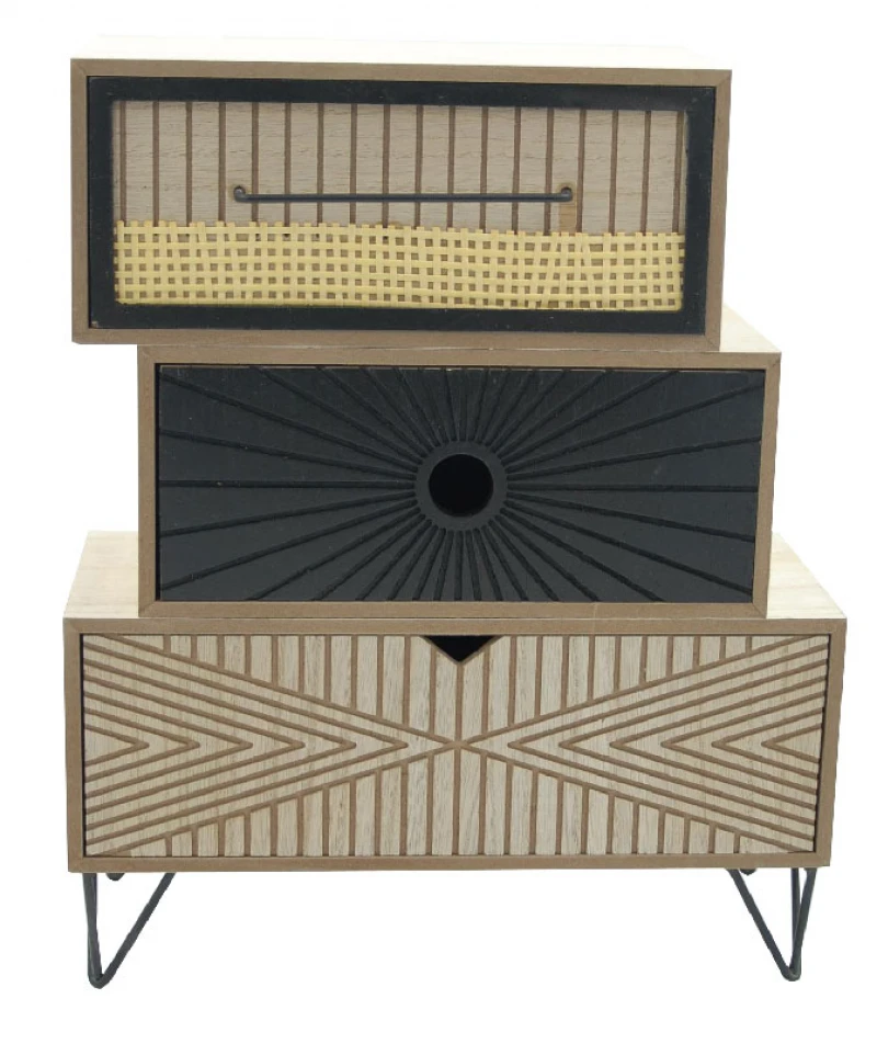 Μίνι κουτί - συρταριέρα ξύλινη με τρία συρτάρια σε ασύμμετρο στυλ από την Royal Art Collection - Διαστάσεις: 30x13x32εκ.