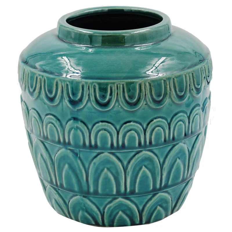 Βάζο κεραμικό σε πετρόλ χρώμα με διακοσμητικά σχέδια από την Royal Art Collection - Διαστάσεις: 19x20εκ.