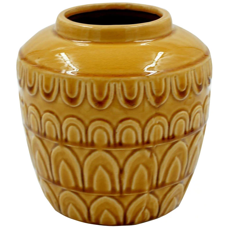Βάζο κεραμικό σε κίτρινο χρώμα με διακοσμητικά σχέδια από την Royal Art Collection - Διαστάσεις: 19x20εκ.