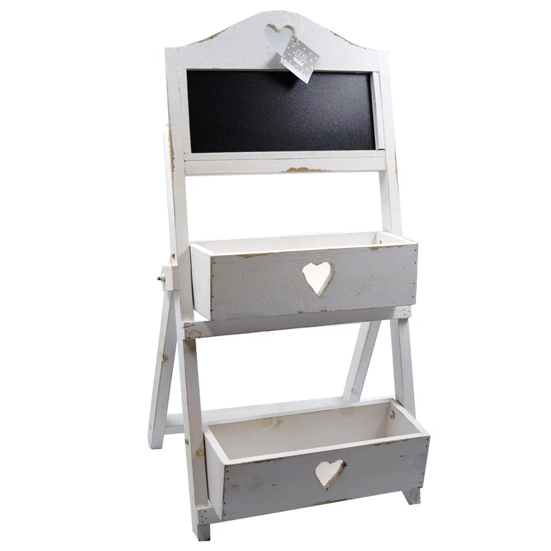Διακοσμητικό ξύλινο στάντ σε λευκό αντικέ χρώμα με μαυροπίνακα από την Royal Art Collection. Διαστάσεις: 32x70εκ.