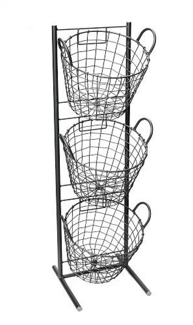 Μανάβης 3 όροφος μεταλλικός σε μαύρο χρώμα με στρογγυλά καλάθια από την ESPIEL - Διαστάσεις: 29x27x90εκ.