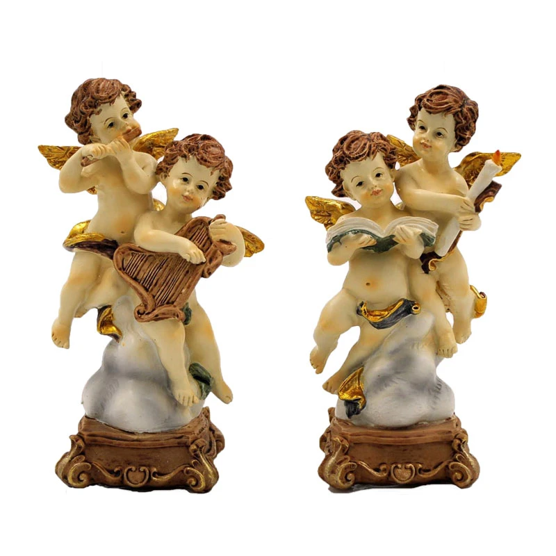 Σετ 2τμχ διακοσμητικά αγγελάκια πολυεστερικά σε μπεζ απόχρωση που κρατούν άρπα και βιβλίο από την Royal Art Collection - Διάσταση: ύψος 17,5εκ.