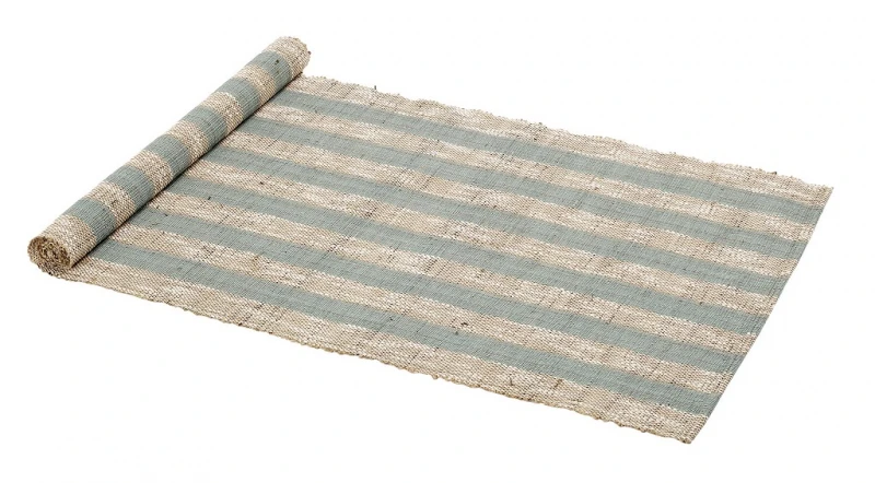 Runner ψάθινο σε μπεζ χρώμα με γαλάζιες ρίγες από την ESPIEL - Διαστάσεις: 45x150εκ.