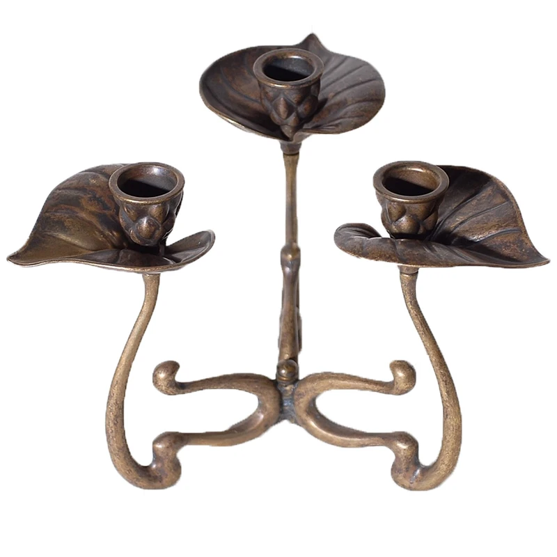 Κηροπήγιο μπρούτζινο 3κερο μπρούτζινο με διακοσμητικά φύλα από την Royal Art Collection - Διαστάσεις: 22εκ.