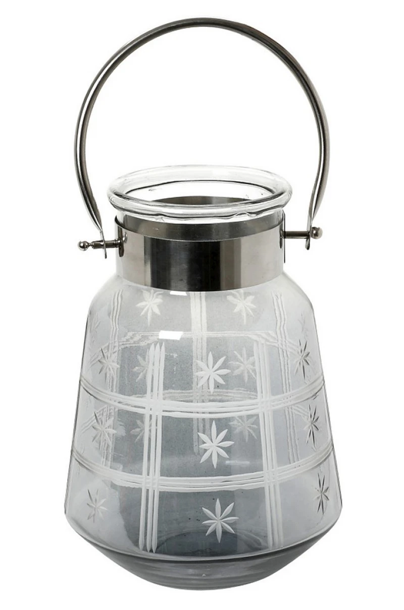 Φανάρι γυάλινο σε γκρι χρώμα από την ESPIEL - Διαστάσεις: 18x18x26εκ.