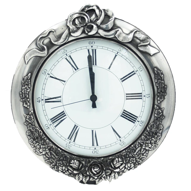 Ρολόι τοίχου μπρούτζινο επάργυρο με διακοσμημένα σκαλιστά λουλούδια από την Royal Art Collection - Διαστάσεις: 30x38εκ.