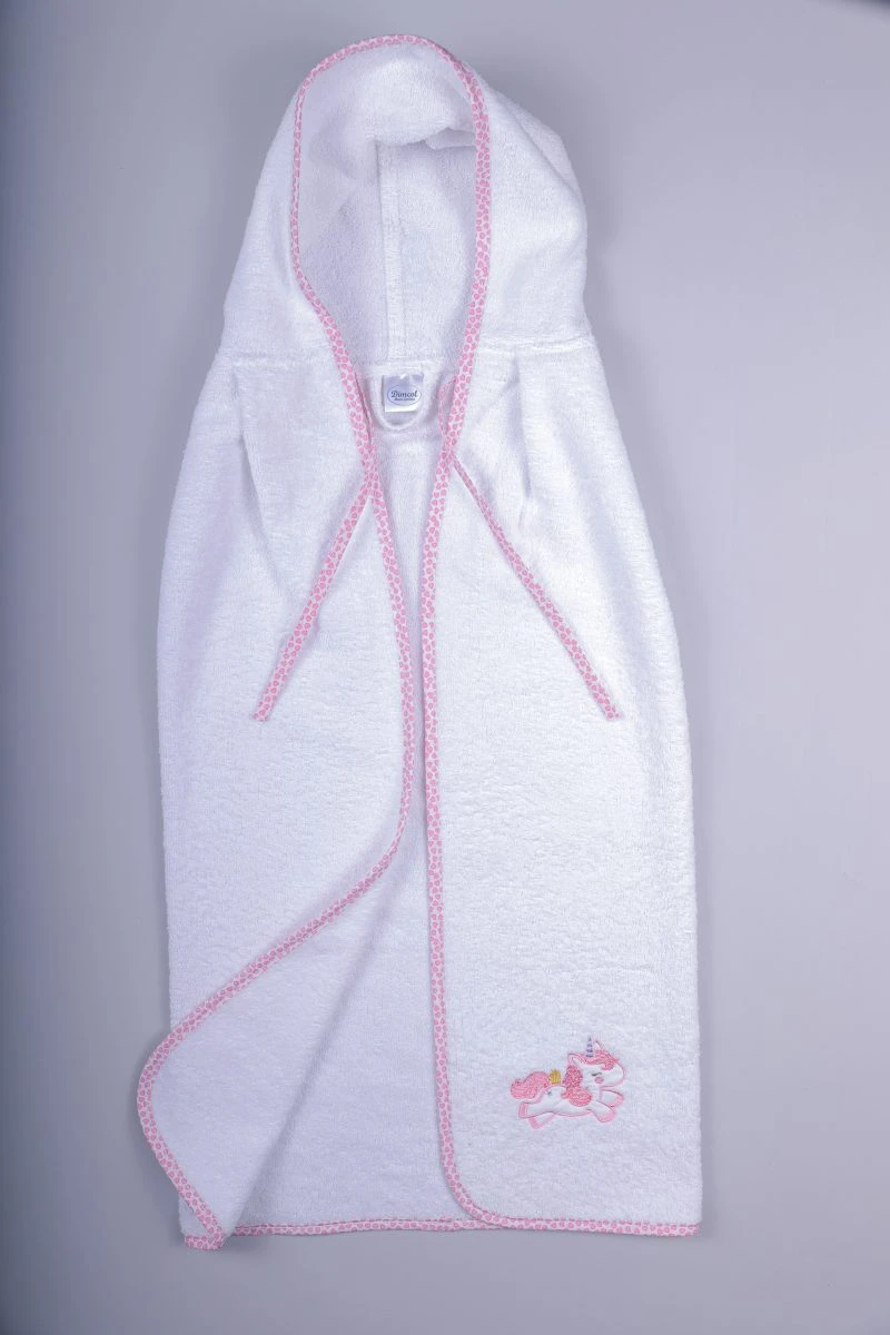 Κάπα μπεμπέ 100% βαμβακερή υψηλής απορροφητικότητας, 400gr/m2, σε λευκό - ροζ χρώμα με κουκούλα και κέντημα από την Dimcol - Διαστάσεις: 75x80εκ.