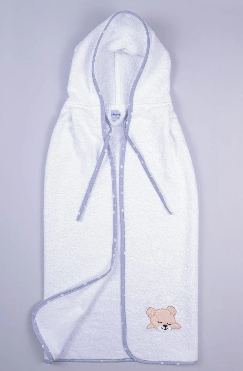 Κάπα μπεμπέ 100% βαμβακερή υψηλής απορροφητικότητας, 400gr/m2 σε λευκό - γκρι χρώμα με κουκούλα και κέντημα, Sleeping Bear Cub 10 από την Dim Collection - Διαστάσεις: 75x80εκ.