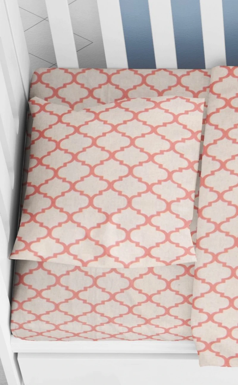 Μαξιλαροθήκη φάκελος bebe εμπριμέ, 100% βαμβακερή, 144 κλωστών, σε λευκό - κοραλί χρώμα από την Dimcol - Διαστάσεις: 35x45εκ.