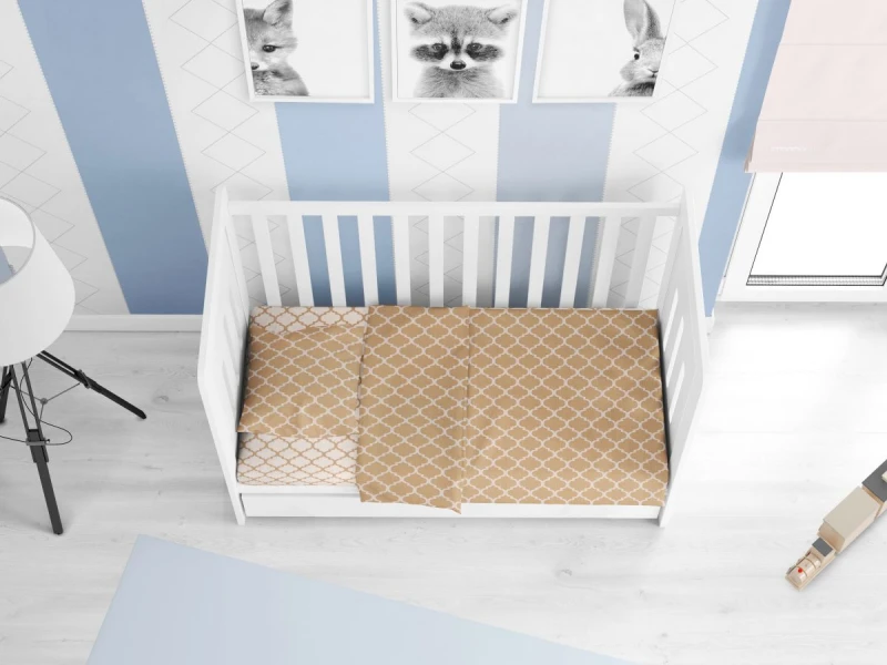 Σετ σεντόνια 3τμχ κούνιας, 100% βαμβακερά, 144 κλωστών σε λευκό - μπεζ χρώμα από την Dimcol. Το σετ περιλαμβάνει: 2 σεντόνια κουνιας 120x160εκ. και 1 μαξιλαροθήκη 35x45εκ.