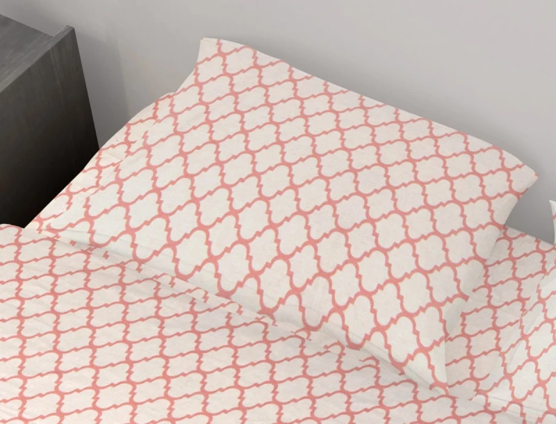 Μαξιλαροθήκη φάκελος εμπριμέ, 100% βαμβακερή, 144 κλωστών σε λευκό - κοραλί χρώμα από την Dimcol - Διαστάσεις: 50x70εκ.
