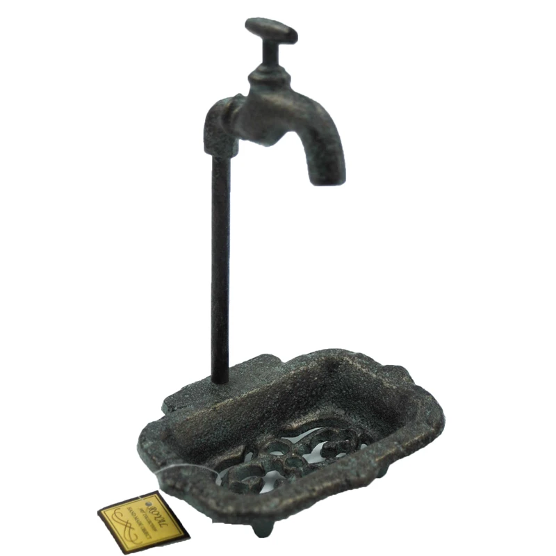 Σαπουνοθήκη μαντεμένια vintage με διακοσμητικό βρυσάκι σε ανθρακί χρώμα από την Royal Art - Διαστάσεις: 14x11x20εκ.